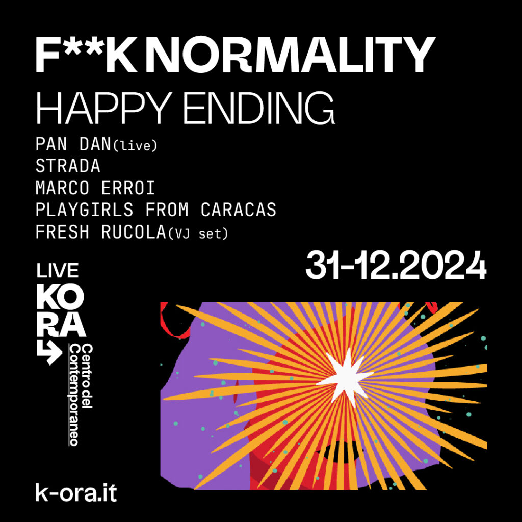 F**k Normality Happy Ending è il rituale che aspettavate per celebrare la notte di capodanno, la voglia di libertà, il ritmo, le energie di una danza collettiva e di un ciclo che si chiude e si apre, che invaderanno le sale dello storico Palazzo Baronale de Gualtieriis, con un intenso e bellissimo flusso di suoni e visioni. Location dell’evento sarà Kora – Centro del Contemporaneo, luogo di produzione e ricerca multidisciplinare sul contemporaneo, situato a Castrignano De Greci, a una ventina di minuti da Lecce.